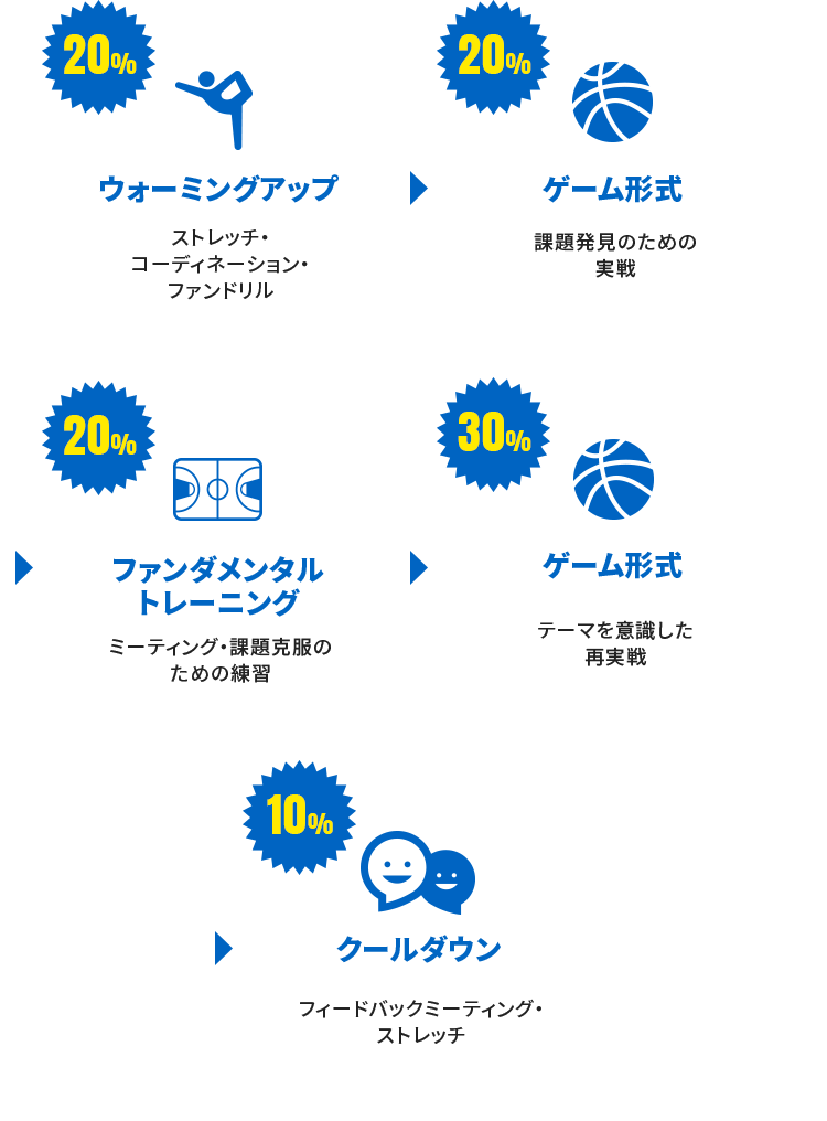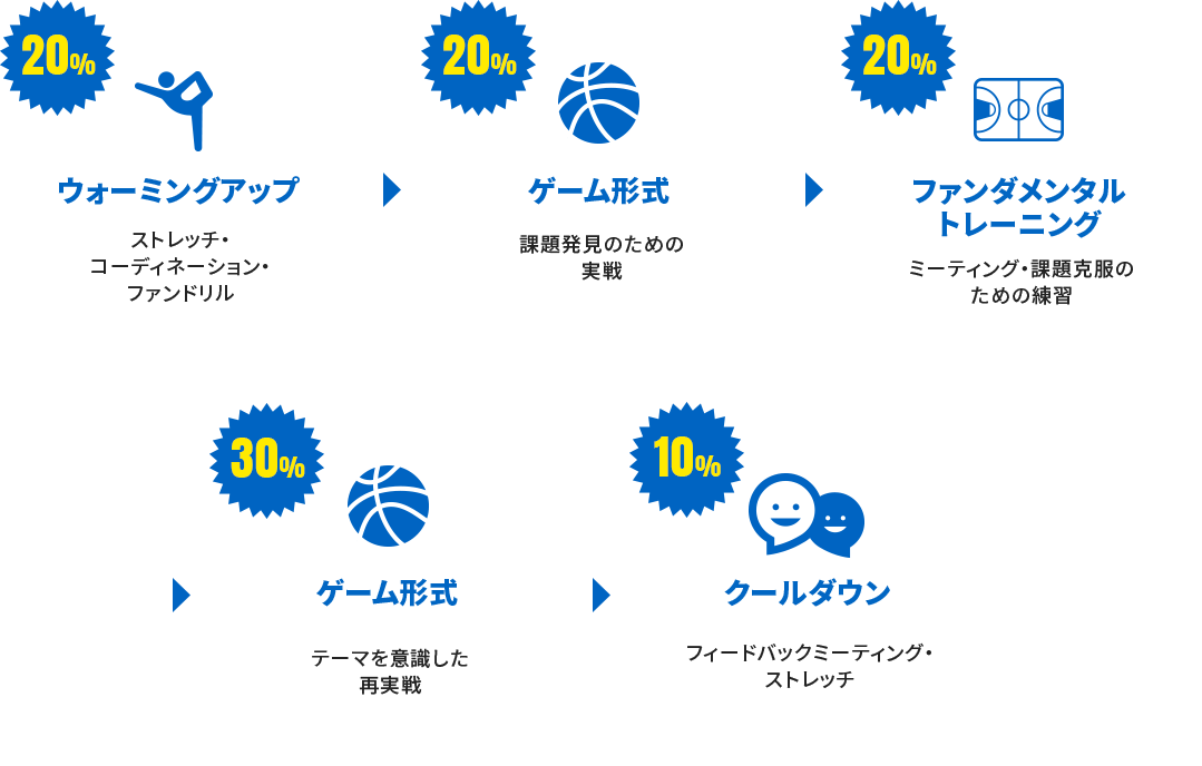 ただつらいだけの走り込みやスキルの単純な反復練習はしません。
